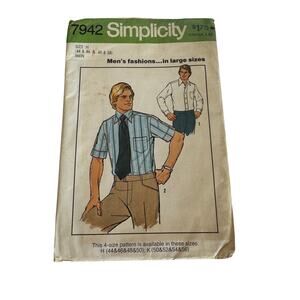 Simplicity 7942 Sewing Pattern Mens Dress Shirt Size 44,46,48,50 c.1977