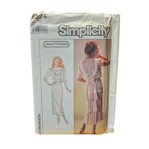 Simplicity 8224 Vtg 80s Dress Jessica McClintock Fish Tail Back Flounce Sz 10