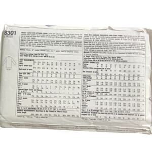 Simplicity 8301 Jacket Pattern 1993 Uncut Complete Factory Fold