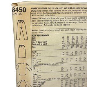Simplicity 8450 Misses Pullover Top Pants Skirt & Loose-Fitting Jacket Sewing Pa
