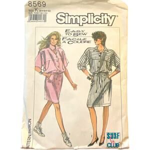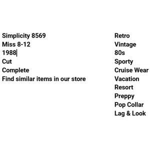 Simplicity 8569 Pattern Dress Miss 8-12 Retro Shirt 80s Vintage Preppy Sporty