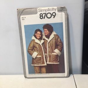 Vintage 1977 sewing pattern. A top-stitched jacket with front pockets and front button closing. Includes one pattern that can be used for misses’ up to size 14 or men’s sizes up to large 42-44. This pattern is unused and in factory fold. In very good condition.