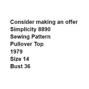 Simplicity 8890 Sewing Pattern Pullover Top 1979