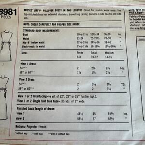 Simplicity 8981 Jiffy Dress Sewing Pattern Sz Small 10-12 Miss 1979