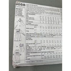 This Simplicity 9058 sewing pattern includes 14 uncut pieces to create elegant Renaissance-inspired dresses and hats in sizes 6-12. Features detailed instructions and various fabric options.
