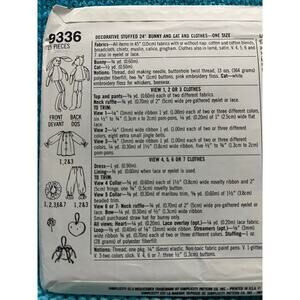 Simplicity 9336 Sewing pattern decorative stuffed bunny cat clothes