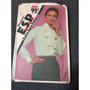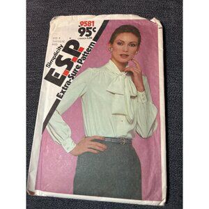 Simplicity 9581 ESP Misses Blouse Sewing Pattern Size 14-16-18 1980 Uncut