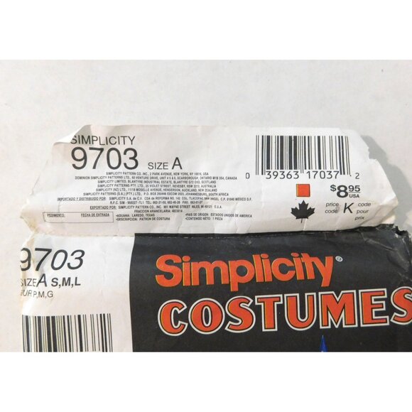 Simplicity 9703 Kids Costume Sewing Pattern Size S M L Halloween