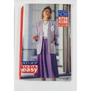 Butterick See & Sew 6759 x 190 (sz A 6-14) Misses Jacket & Dress 1993 Uncut