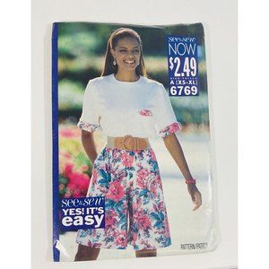 Butterick See & Sew 6769 (size A xs-xl) Misses Top & Shorts 1993 Uncut
