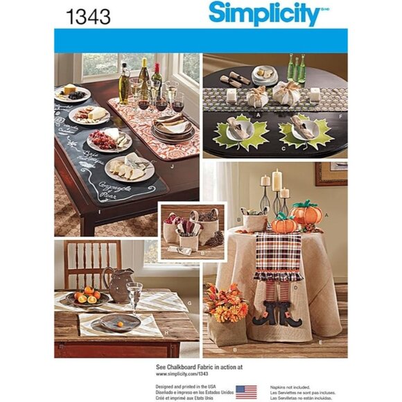 Simplicity Fall Table Decor 1343 Pattern Holiday Chalkboard Fabric 28 Pieces