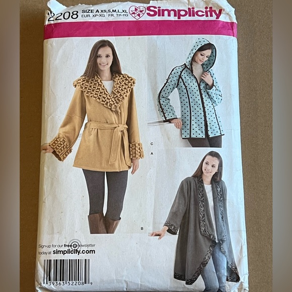 Simplicity 2208 Misses' Fleece Jackets sewing pattern Size XS-XL #sewing #fleece #diy #jackets #womens
