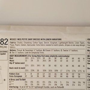 Simplicity Misses Miss Shirt Dress Sewing Pattern