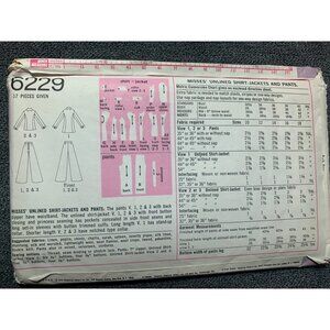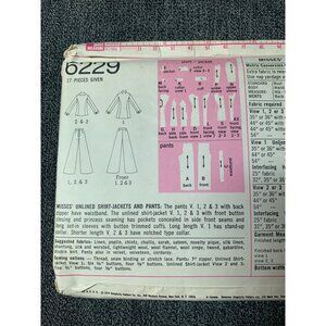 • Title: Shirt Jacet Pants Misses Pattern 6229