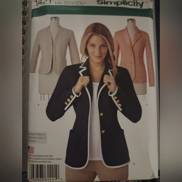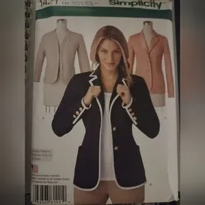 Misses' Unlined Jacket with or without collar and finishing variations...separate pattern pieces included for A,B,C,D cup sizes.