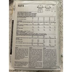 Simplicity Pattern 9273 Sizes 3 - 6 Childs Dress Tunic Leggings Cut 1994.
