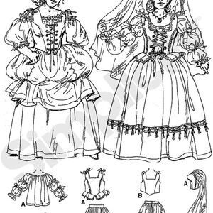 This sewing pattern template packet includes instructions for (2) different classical renaissance designs.