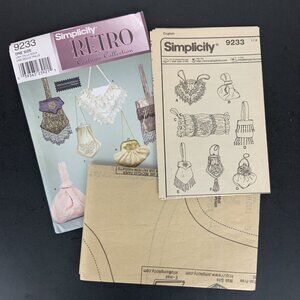 This Simplicity 9233 Retro Costume Collection contains an uncut sewing pattern for crafting elegant evening bags. Ideal for adding a vintage touch to outfits.