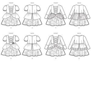 This sewing pattern offers a versatile selection of princess and fairy costume designs. Ideal for creating detailed and imaginative outfits for toddlers and children.