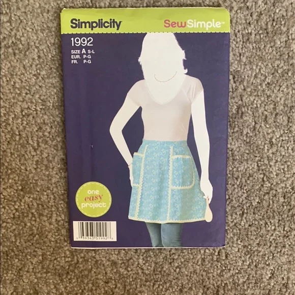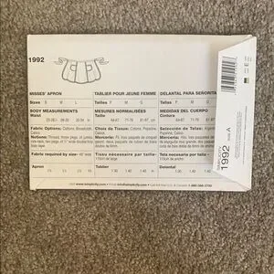 Charming apron pattern by Simplicity. Features a blue and white design. Perfect for beginners.
