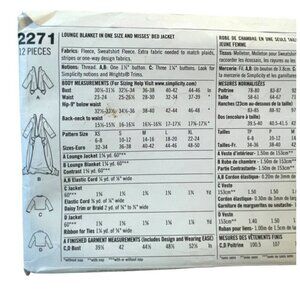 Simplicity Sewing Pattern 2271 Lounge Blanket Bed Jacket Misses One Size