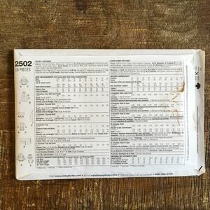 Back of Envelope shows corresponding bust, waist, hip sizes.