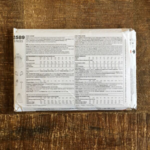 Back of Envelope shows corresponding bust, waist, hip sizes.