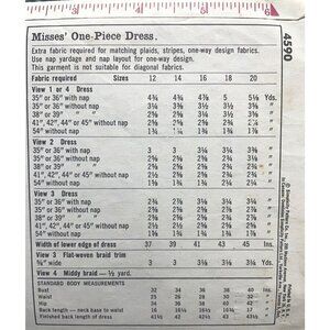 Simplicity Sewing Pattern 4590 Dress Sheath Shift Misses Size 18 PARTIAL CUT