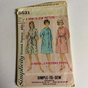Simplicity Sewing Pattern 5531 Juniors Teens House Robe Size 14 Housecoat