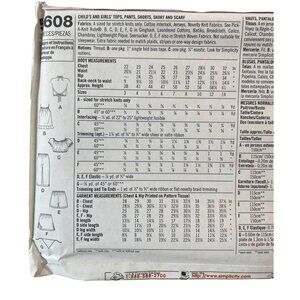 Simplicity Sewing Pattern 5608 Girls Tops Pants Shorts Skort Scarf Size 7-14