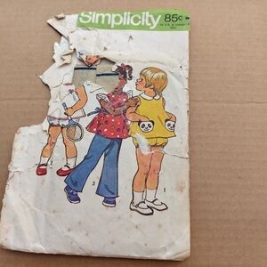 Simplicity Sewing Pattern 5703 Toddler Girls Bloomers Top Bell Bottom Pants