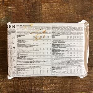 Back of Envelope shows corresponding bust, waist, hip sizes.