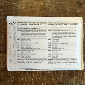 Simplicity PATTERN 7270 11.5" Fashion Doll such as Barbie and 12” Fashion doll such as Ken Clothes— Short, Pants, Bra Top, Dress, Top, Skirt, Jacket, Shirt and Shorts, Pants and Top UNCUT