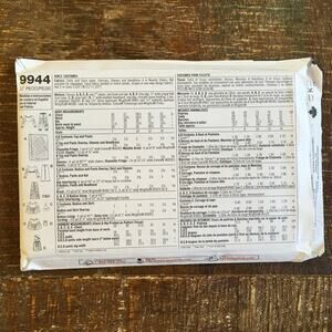 Back of Envelope shows corresponding bust, waist, hip,, back sizes.