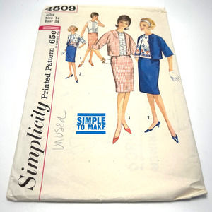 Simplicity Vintage1960's Pattern #4809 Blouse/Suit/Reversible Jacket Size 14