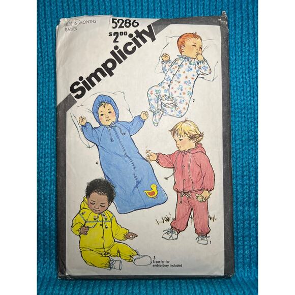 Simplicity Sewing pattern 5286 Baby blanket sleeper coverall pants hooded jacket size 6 months