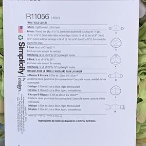 R11056 Contains pattern for 3 styles of mask Child and adult size Size S - L All patterns are 3 for $20!