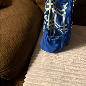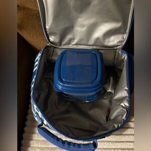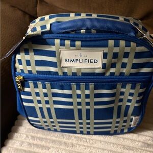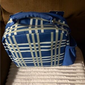 Simplified Blue Plaid Lunch Tote top handle,zip front 2 containers /micro safe