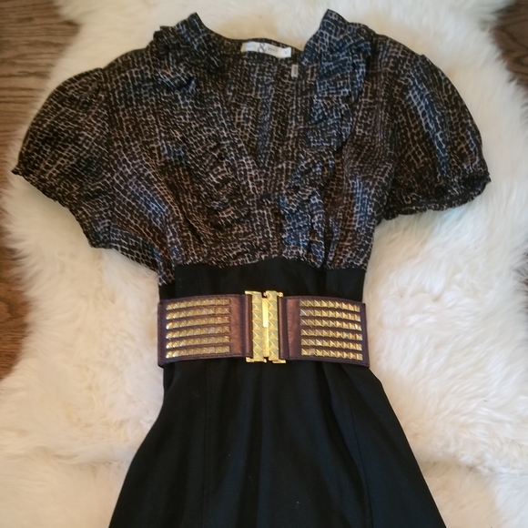 This dress is super cute! Belt not included. Needs a new hem and a belt loop repair but loads of potential!!