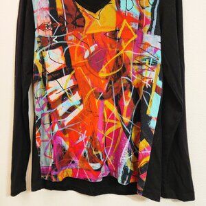 Simply Art by Dolcezza Top Multi Color Abstract Tunic Long Sleeve Women L Artsy