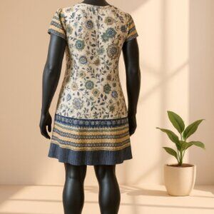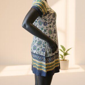 Simply Aster Boho Floral Print Short Sleeve Tunic Dress Women’s XL Multicolor