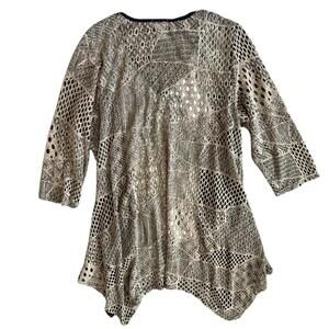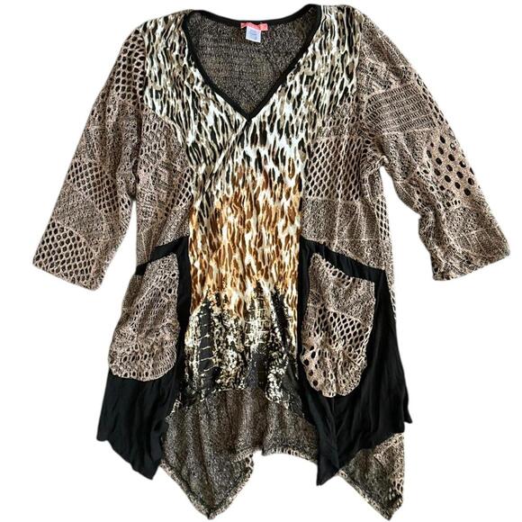 Simply Aster Mixed Animal Print Mesh Patchwork Cardigan Top M Boho Chic