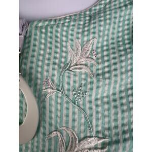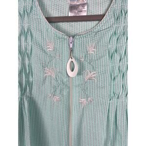 Simply Basic Green white stripe embroidered floral zip house dress muu muu 2XL