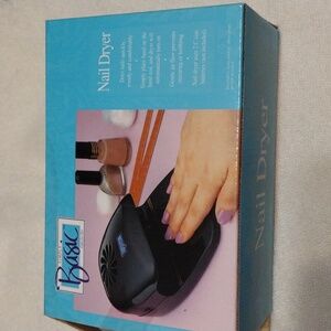 simply basic nail dryer, dries nails quickly evenly and comfortably. place hand on the hand rest and the dryer will automatically turn on. requires two C batteries, never used in original packaging. Easy for traveling and storage. smoke-free home. Make me an offer