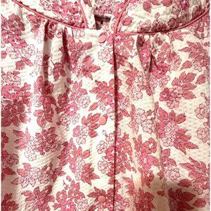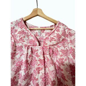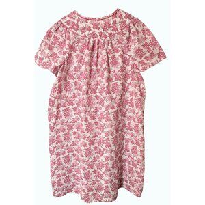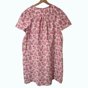 Simply Basic Pink & White Floral Cotton House Dress Mumu Smocking & Pockets XL