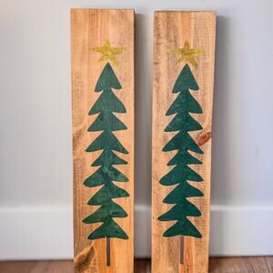 Simple, Rustic and Country Handpainted Christmas Trees on Raw Wood Boards-Matte Finish-Comes as a set of 2, Wall Decor or Tabletop Decor when leaned against a wall.