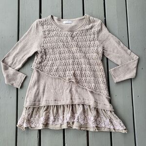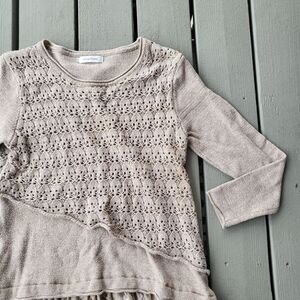 Simply Couture Cream Long Sleeve Lace Asymmetric Tiered Tunic Sweater Size