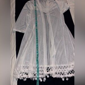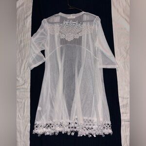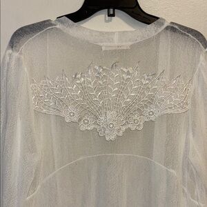 Delicate ivory lace overlay with elegant patterns. Ideal for chic layering.