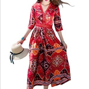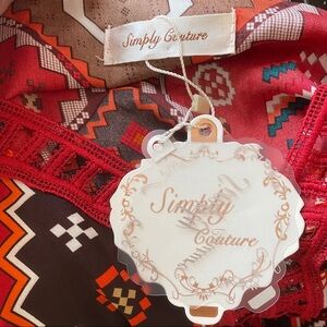 Simply Couture NWT red oriental lined dress. Sexy hollow out ladder V-Neck geometric printed half sleeve maxi dress. Size large