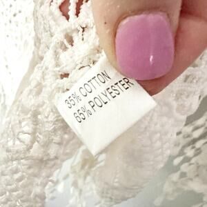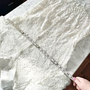 Simply Couture White Eyelet Lace Fringe Button Down Long SleeveTop Women's XL